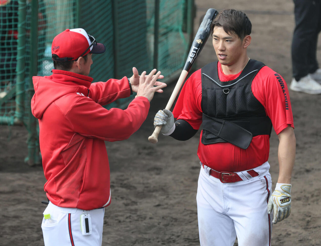 広島で打力強化に新アイテムが導入された。フリー打撃から中村奨成外野手(26)や矢野雅哉内野手(27)らが「ウエートベスト」を着用した。