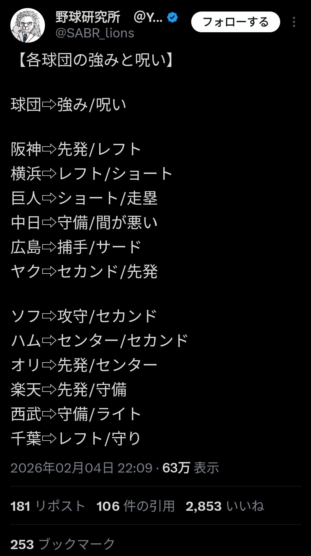 【各球団の強みと呪い】