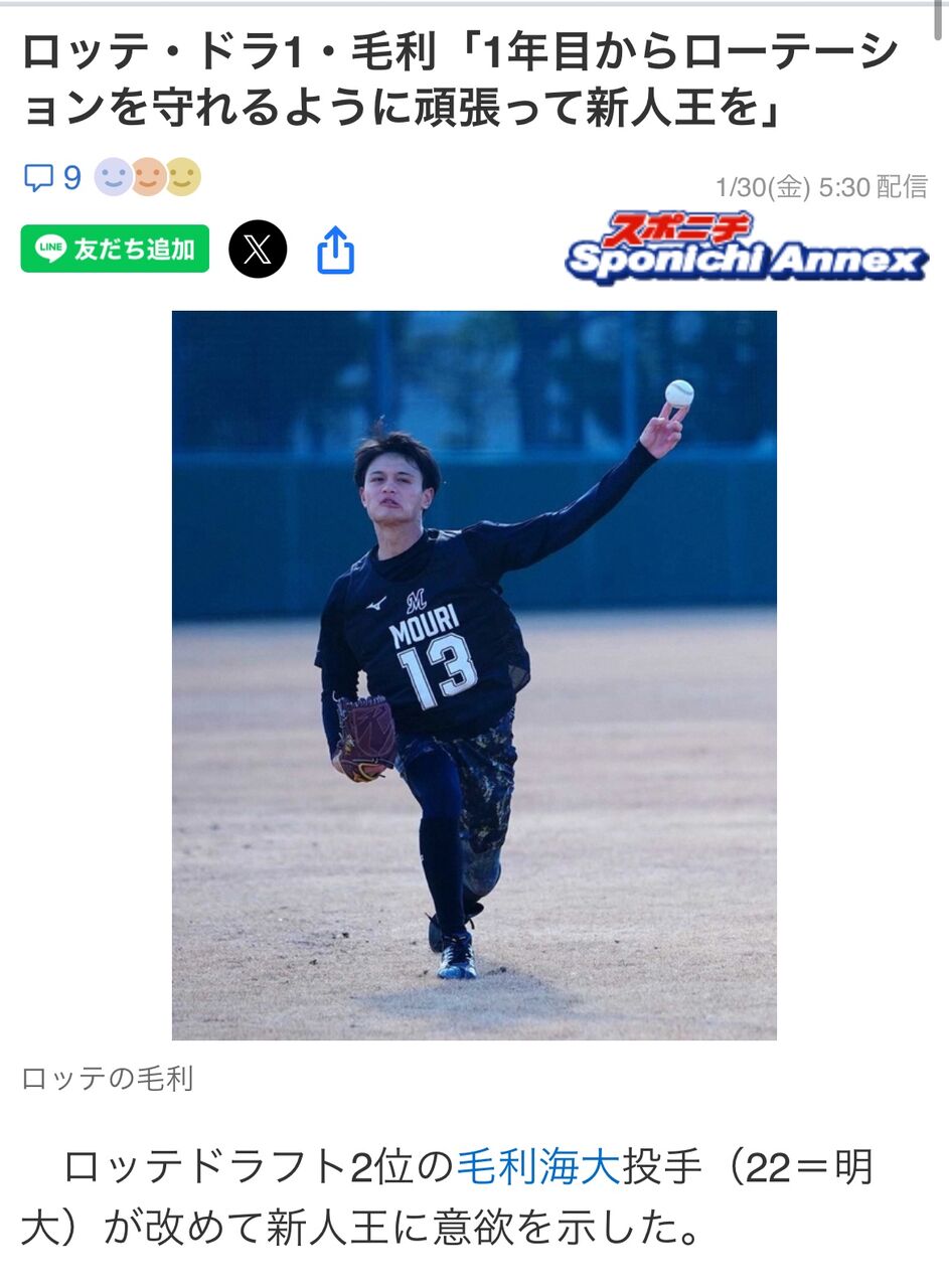 ロッテドラフト2位の毛利海大投手(22=明大)が改めて新人王に意欲を示した。