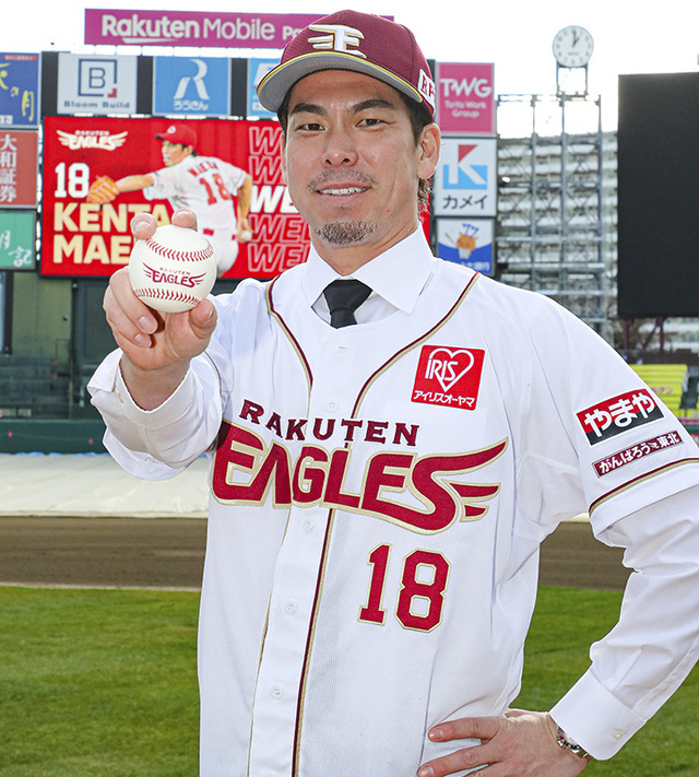 11年ぶりの日本球界復帰を目指していた前田に広島からのオファーなく、昨年11月に楽天への入団が発表された。前田は「新しいチーム、新しい仲間とともに日本一を目指して頑張っていきたい」と決意。「(広島と)日本シリーズで戦えたらすごくうれしいですし、選手としても最高の瞬間になるかなと思います」と語った。