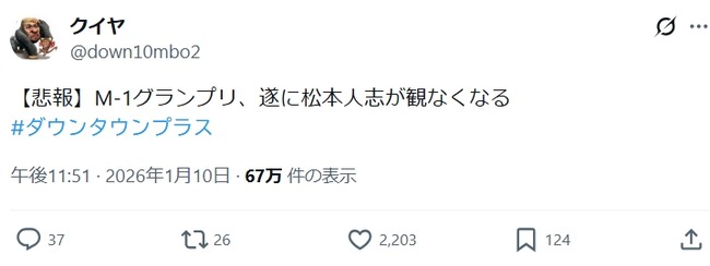 【悲報】M-1、松本人志に完全に捨てられてたことが判明 スポンサーリンク なんJ PRIDE 2026.01.14 スポンサーリンク 引用元: https://nova.5ch.net/test/read.cgi/livegalileo/1768127908/ 1: それでも動く名無し 2026/01/11(日) 19:38:28.35 ID:ahFpKwYd0 2: それでも動く名無し 2026/01/11(日) 19:39:12.36 ID:16qcrTwf0 紳助と遊んでそう 続きを読む Source: なんJ PRIDE